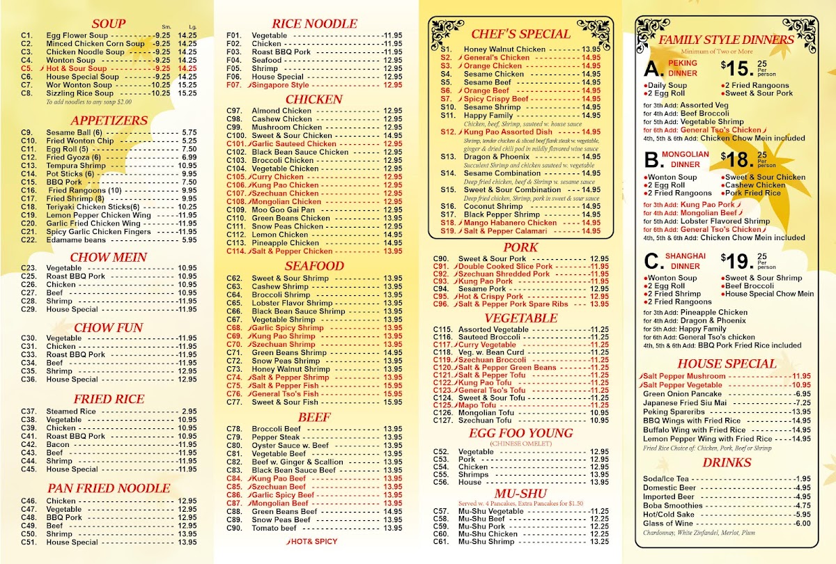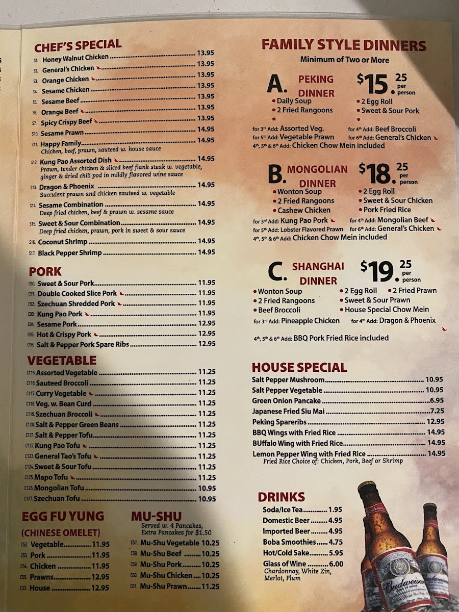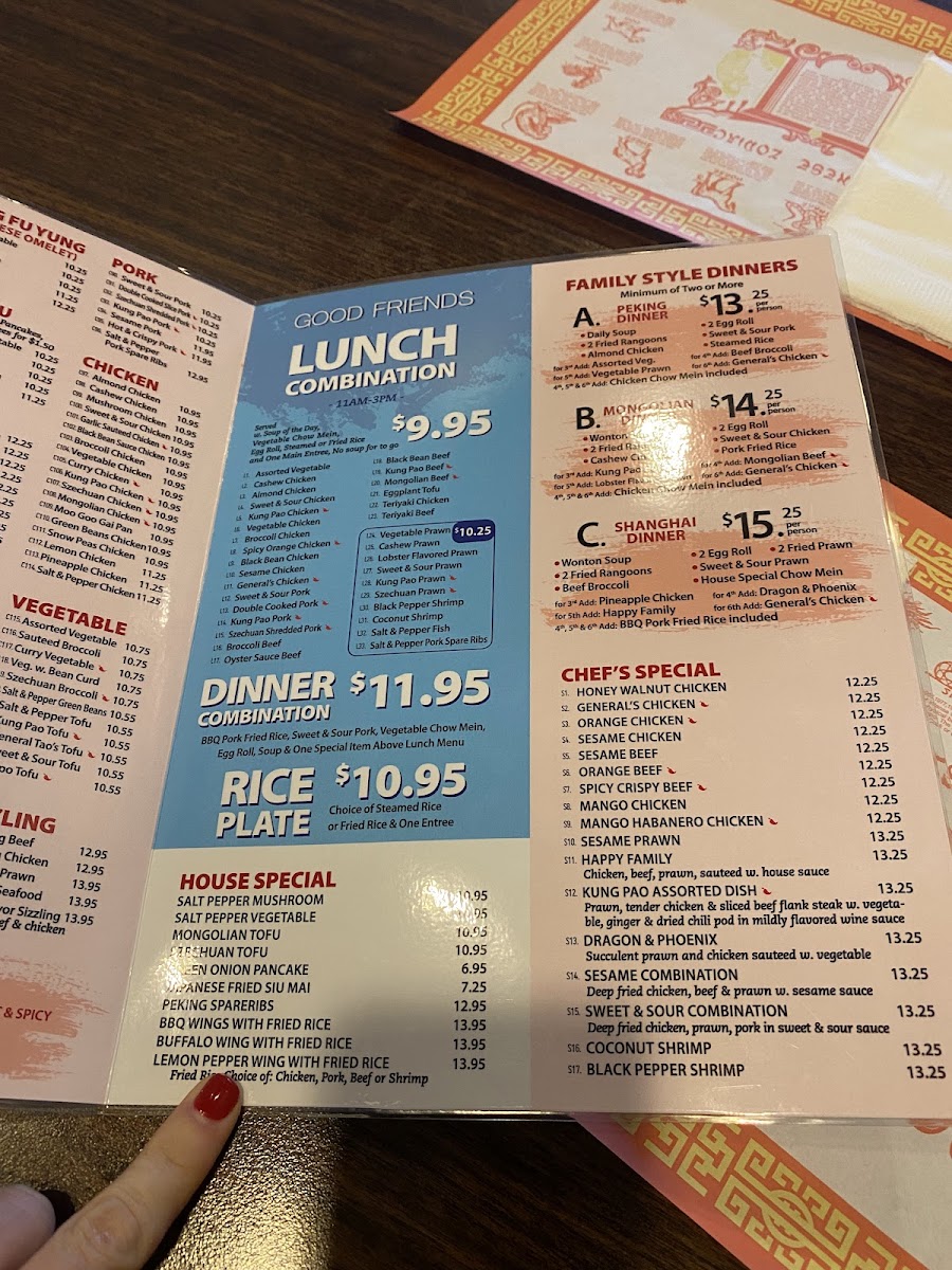 Good Friends specializes in traditional Chinese fare, and their menu is packed with both classic and innovative offerings. The highlight of their selection includes the renowned Chow Fun, which features a variety of delectable options such as Chicken Chow Fun, Roast BBQ Pork Chow Fun, and the House Special Chow Fun—each dish priced around $16.95 to $17.95. The flavor bursts forth in every bite, with each stir-fried noodle capturing the essence of high wok heat, making the Chicken Chow Fun crispy yet tender. Meanwhile, the Prawn Udon Stir Fry and the Mongolian Beef are popular staples that demonstrate the kitchen’s mastery over both noodles and proteins. Diners rave about the generous portions that often yield more than just one satisfying meal!